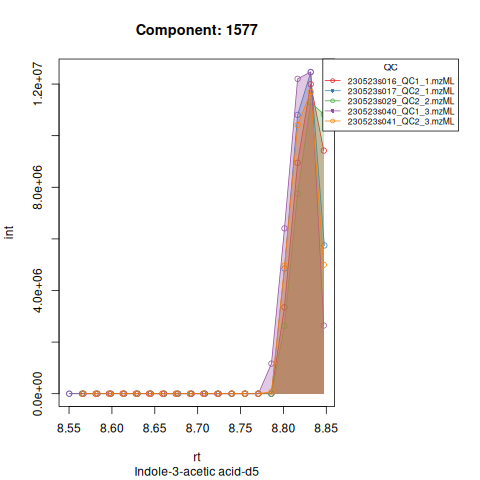 | 1577 | 31303341 | 9601707 | 5.337986 | 0.9473591 | 529.66261 | 7.666667 | 1577 | Indole-3-acetic acid-d5 | 181.1020 | 529.66261 | 529.66261 | TRUE | 529.2 |