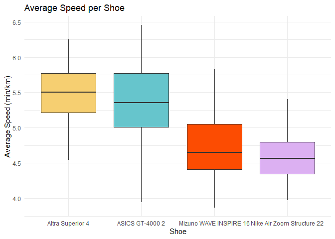 Same for shoes (attention, y-axis is the pace in min/km), so lower is faster!