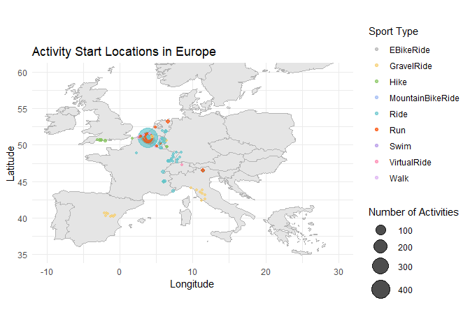 Finally, I overlayed the start locations of my rides on the maps of Europe and Belgium (the only other countries I used Strava outside Europe would bike Canada and South-Korea).
